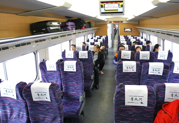 12點(diǎn)02分,記者在鄭州站乘坐C2967次列車再次體驗(yàn),發(fā)現(xiàn)車上的人數(shù)仍舊不多,多節(jié)車廂內(nèi)只有十幾個(gè)人,而2號(hào)車廂竟然空無一人。17點(diǎn)31分,記者乘坐C2972返程時(shí),車上的人數(shù)則相對(duì)較多,多數(shù)車廂有將近30人,最多的一節(jié)有近40人。
