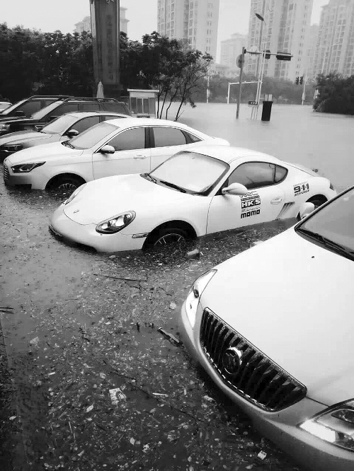 從7月8日晚上10時左右開始的暴雨越下越猛,9日上午,新鄉(xiāng)市區(qū)不少路面的水深已經(jīng)齊腰,有涵洞積水近3米深,不少露天停放的車輛幾乎被整個淹沒,公園的涼亭也已經(jīng)看不到頂。新鄉(xiāng)市一些山區(qū)山洪暴發(fā),場面震撼。