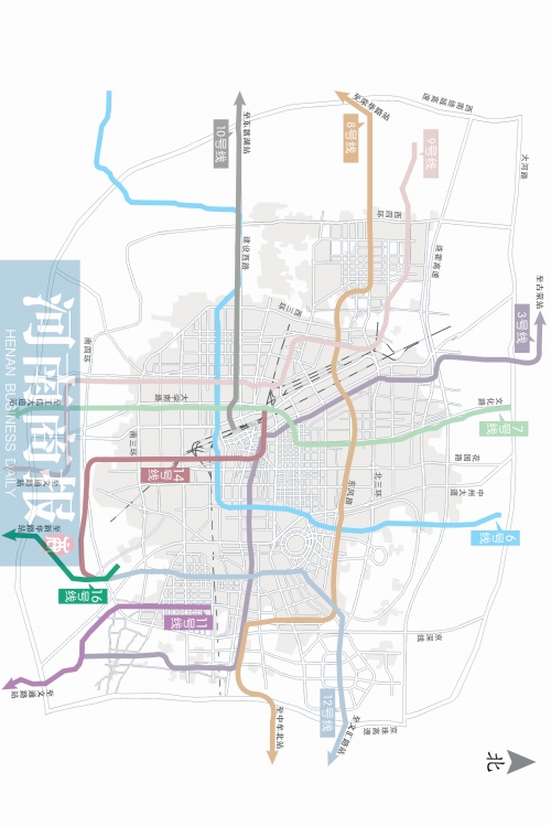 3號線走向?yàn)槲鞅?、東南,聯(lián)系惠濟(jì)區(qū)、城北片區(qū)、老城區(qū)、鄭東新區(qū)和經(jīng)開區(qū)。
