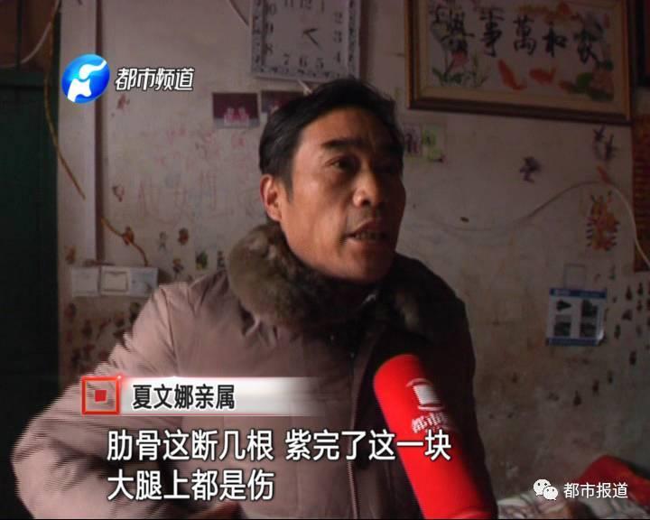 隨后,夏文娜家人趕到了殯儀館,在殯儀館見到了夏文娜的尸體。家人發(fā)現(xiàn)文娜肋骨斷裂、腿部有傷。