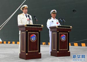 當(dāng)日,參加中俄“海上聯(lián)合—2014”軍事演習(xí)的俄方艦艇陸續(xù)駛抵上海某軍港。中俄兩國海軍互鳴禮炮,中方為來訪的俄艦舉行隆重歡迎儀式。俄羅斯太平洋艦隊旗艦“瓦良格”號導(dǎo)彈巡洋艦駛?cè)胲姼蹠r,參加歡迎儀式的軍樂隊奏響歡迎曲。隨后,“快速”號驅(qū)逐艦、“潘捷列耶夫海軍上將”號大型反潛艦、“伊利姆”號中型海洋油船、“涅維爾斯科伊海軍上將”號大型登陸艦,“卡拉爾”號海洋拖船陸續(xù)駛?cè)敫劭凇_@次聯(lián)合軍事演習(xí),中俄海軍都派出了主戰(zhàn)艦艇參加。中方參演兵力包括導(dǎo)彈驅(qū)逐艦、導(dǎo)彈護(hù)衛(wèi)艦、綜合補(bǔ)給艦以及導(dǎo)彈艇等水面艦艇8艘、潛艇2艘、固定翼飛機(jī)9架。俄方參演兵力包括巡洋艦、反潛艦、驅(qū)逐艦、登陸艦、油船和海洋拖船等水面艦艇6艘。此外,為執(zhí)行海上聯(lián)合解救被劫持船只、護(hù)航等特殊任務(wù),雙方還派出艦載直升機(jī)、特戰(zhàn)分隊等兵力參加此次演習(xí)。新華社記者 查春明攝