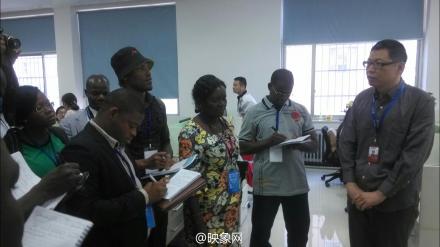 5月28日上午,來自西非國家多哥的一些新聞媒體同行大約20人,來到映象網(wǎng)考察,交流工作,其中大多數(shù)人都是第一次來中國,第一次來河南。圖為映象網(wǎng)總經(jīng)理王小兵向外國朋友介紹映象網(wǎng)的有關(guān)情況。