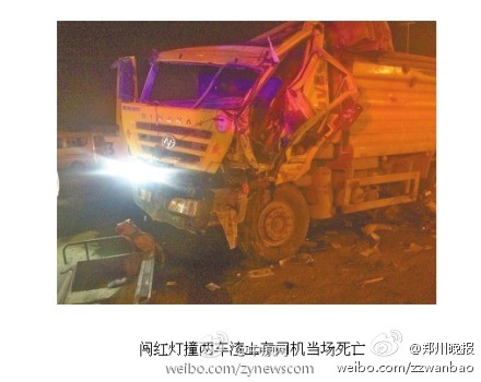 2.鄭州:渣土車凌晨闖紅燈連撞兩車 司機(jī)當(dāng)場(chǎng)死亡
