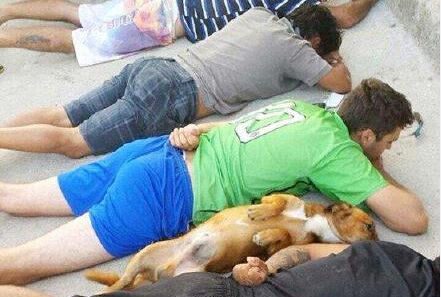 巴西警方最近搗毀了一個毒販老巢。警察剛破門的時候毒販家的看門狗還對著警察狂叫,后來發(fā)現(xiàn)它的主人被警察制服了以后,居然也跟著主人一樣自覺躺在地上一動不動了……