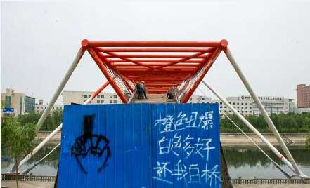 近日,位于東風(fēng)路政七街附近的東風(fēng)渠景觀橋,原本是白色現(xiàn)被噴成橙色。橋頭藍(lán)色護(hù)板被涂鴉,上面赫然寫著“橙色丑爆,白色多好,還我白橋”。施工人員解釋稱,橙色漆為防銹漆,可防止橋身受潮而銹跡斑斑,噴完以后會再噴回白色。你覺得哪個色好看?