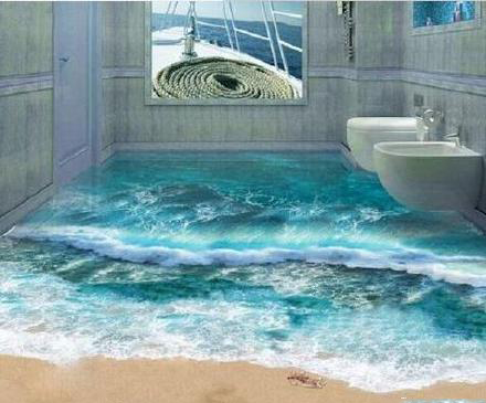 國外的3D浴室地板照,立體逼真如夢幻的海底世界,清澈見底的海水,暢游的魚群,實在是驚艷!有深??謶职Y的,根本不敢下腳吧!