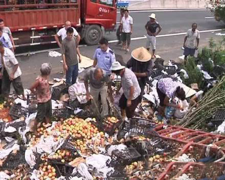 13、蘋果貨車翻車遭哄搶,村民道歉并退賠2680元