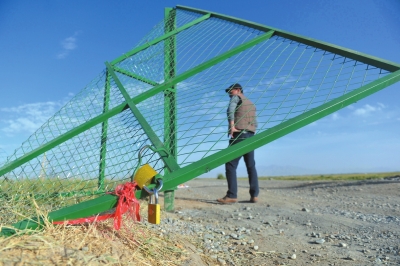牧民新建的草場圍欄大門被盜采者破壞掀翻。牧民新建的草場圍欄大門被盜采者破壞掀翻。