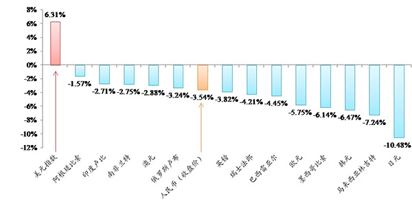 答:從數(shù)據(jù)看,人民幣在全球貨幣體系中仍表現(xiàn)出穩(wěn)定強勢貨幣特征。近期美元上漲較快,反映的是美國經(jīng)濟增長加快、通脹預(yù)期上升、美聯(lián)儲加息步伐可能明顯加快等美國國內(nèi)因素。而人民幣匯率對美元波動有所加大,主要是特朗普當(dāng)選美國總統(tǒng)、美聯(lián)儲加息預(yù)期突然增強、英國“脫歐”、埃及鎊自由浮動等外部因素驅(qū)動。這些因素對世界各國而言都有些意外,資金回流美國推動美元指數(shù)迅速上漲、美國三大股指再創(chuàng)新高,全球貨幣普遍對美元貶值,有的跌幅還比較大。下一步美元走勢存在不確定性,不排除市場預(yù)期修正引發(fā)美元回調(diào)的可能。