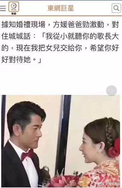 【方媛爸爸叮囑#郭富城#:我從小聽你歌長(zhǎng)大】據(jù)港媒報(bào)道,#郭富城方媛婚宴#現(xiàn)場(chǎng),方媛爸爸很激動(dòng)地對(duì)郭富城說:“我從小就聽你的歌長(zhǎng)大的,現(xiàn)在我把女兒交給你,希望你好好對(duì)待她。”