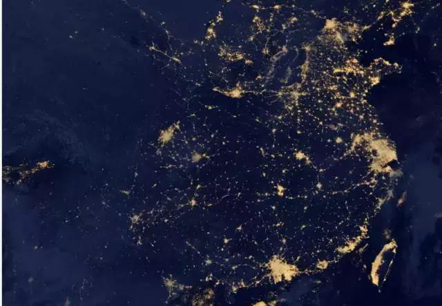 這份圖上,最閃亮的兩部分區(qū)域分別是珠三角和長(zhǎng)三角,這也是中國(guó)目前最為成熟的兩大城市群,而作為傳統(tǒng)三大城市群之一的京津冀除了北京、天津之外,其他都呈散點(diǎn)排列,至于新晉的中原等城市群,規(guī)模上還不明顯。