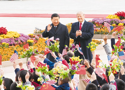 11月9日,國(guó)家主席習(xí)近平在北京人民大會(huì)堂東門外廣場(chǎng)舉行歡迎儀式,歡迎美利堅(jiān)合眾國(guó)總統(tǒng)唐納德·特朗普對(duì)中國(guó)進(jìn)行國(guó)事訪問。