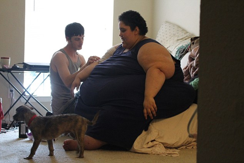 美國德克薩斯州休斯頓有個名叫貝蒂的女子體重高達600斤。造成這個年僅24歲女人如此肥胖的原因是其飲食習慣,她酷愛炸雞和烤肉醬。因體重過大,這位女子非但無法出門,就連上廁所、洗澡和吃飯都要丈夫Josh伺候。