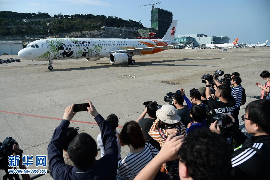 4月30日,大熊貓抵達(dá)澳門機(jī)場。當(dāng)日16時許,中央政府贈送澳門的新一對大熊貓運(yùn)抵澳門,澳門特區(qū)政府行政法務(wù)司司長陳海帆等官員及部分少年兒童在機(jī)場迎接。大熊貓經(jīng)檢疫人員檢查后在運(yùn)輸籠中向前來接機(jī)的人們短暫亮相。目前它們身體狀況良好,隨后將前往金像農(nóng)場進(jìn)行30天隔離檢疫。新華社記者張金加攝