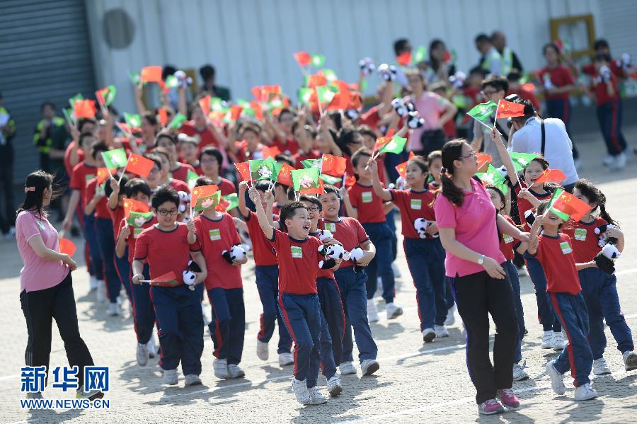 4月30日,孩子們在澳門機(jī)場迎接大熊貓。當(dāng)日16時許,中央政府贈送澳門的新一對大熊貓運(yùn)抵澳門,澳門特區(qū)政府行政法務(wù)司司長陳海帆等官員及部分少年兒童在機(jī)場迎接。大熊貓經(jīng)檢疫人員檢查后在運(yùn)輸籠中向前來接機(jī)的人們短暫亮相。目前它們身體狀況良好,隨后將前往金像農(nóng)場進(jìn)行30天隔離檢疫。新華社記者張金加攝