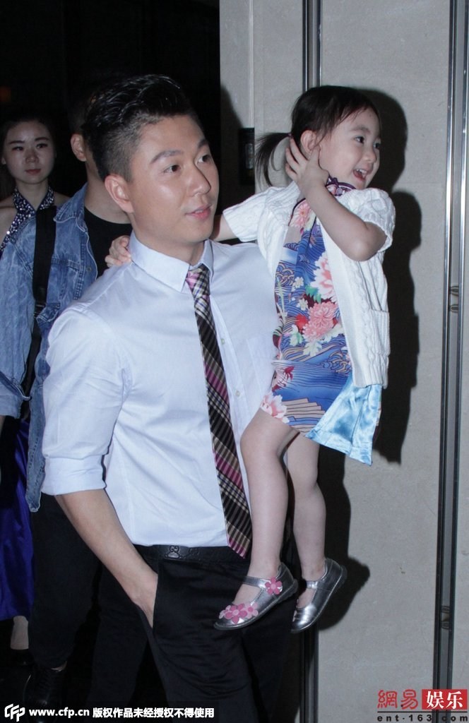 近日李小鵬抱女兒快步離開活動現(xiàn)場。女兒奧莉身穿花旗袍配白色外套,還不停做表情賣萌搶鏡?! ?