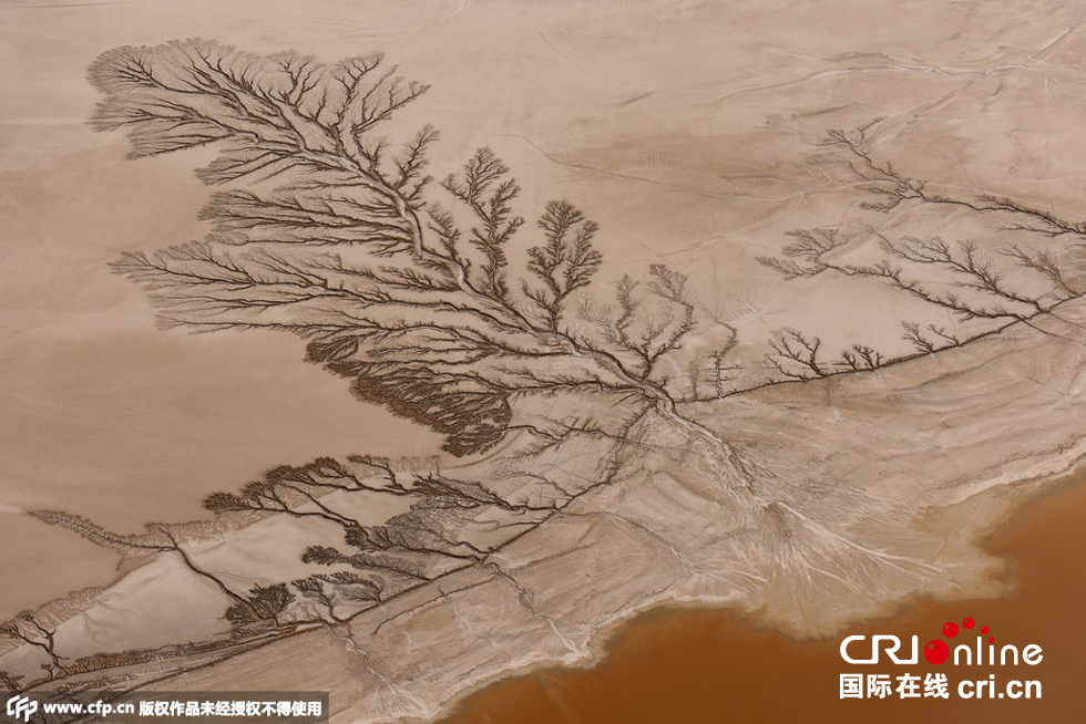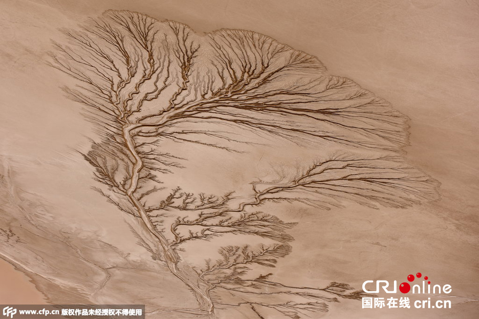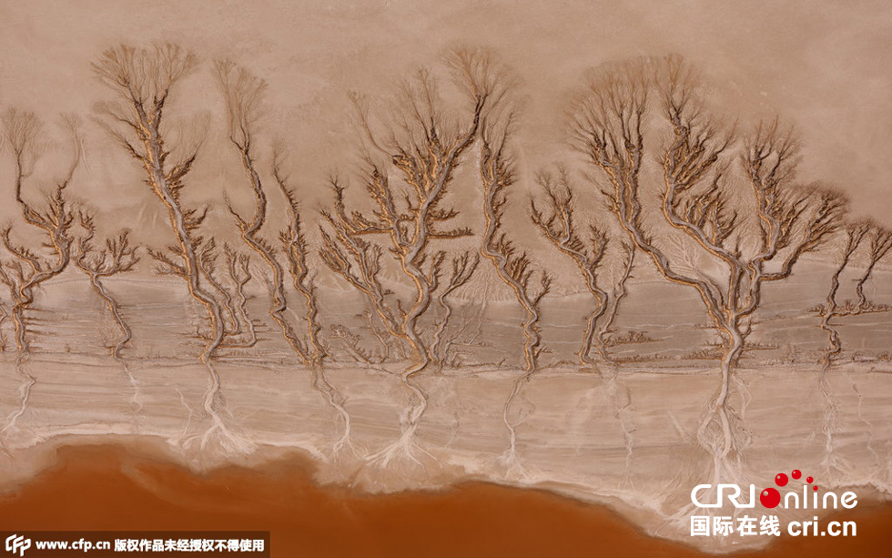 2015年6月5日消息,美國加州莫哈韋沙漠,這些照片看起來像是拍了森林中的一排樹,但事實上它們是干涸湖底的紋路。這種紋路足足綿延3英里。飛行教員Jassen Todorov在3000英尺的空中拍下了這組照片。圖片來源:CFP