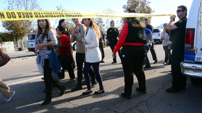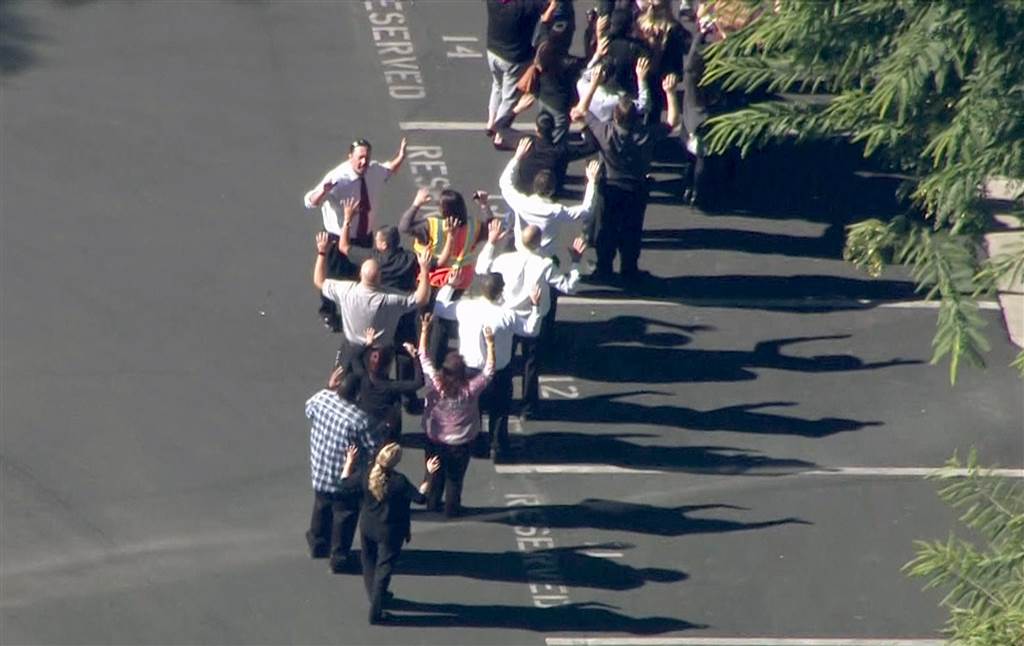 12月3日,美國加利福尼亞州的圣貝納迪諾(San Bernardino)發(fā)生槍擊,受害者多達20人,圖為當(dāng)局疏散人群。