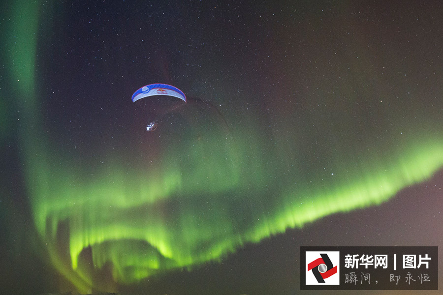 滑翔傘運(yùn)動(dòng)員Horacio Llorens在挪威終于完成了一生的夙愿“與極光跳舞”,畫面非常震撼。圖片來源:視覺中國