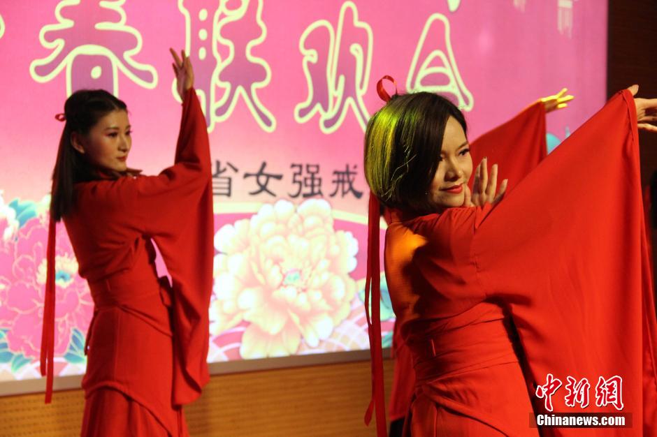 22日,適逢元宵佳節(jié),一場由民警和戒毒學(xué)員共同演繹的聯(lián)歡會在陜西省女強(qiáng)制隔離戒毒所舉行,通過歌舞、相聲、二人轉(zhuǎn)、小品等表演形式,鼓勵戒毒人員在新的一年,繼續(xù)增強(qiáng)戒毒意愿和決心,早日戒除毒癮回歸社會。圖為民警表演歌伴舞。 張一辰 攝