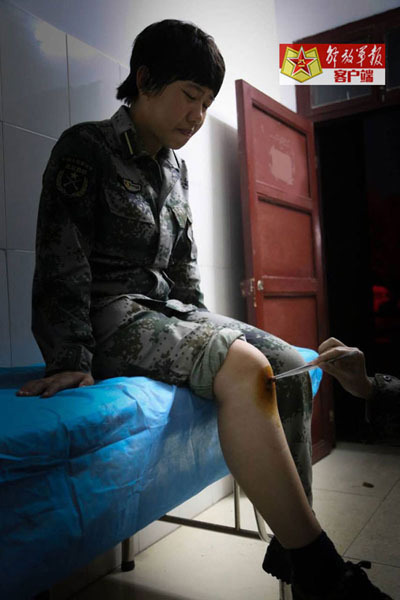 為了一個(gè)硬氣的跪地動(dòng)作,摔青了膝蓋,為了舞臺(tái)更好的效果,節(jié)食少眠,身為軍校女兵,我們跳出的舞蹈不僅要優(yōu)美,還得充滿力量。