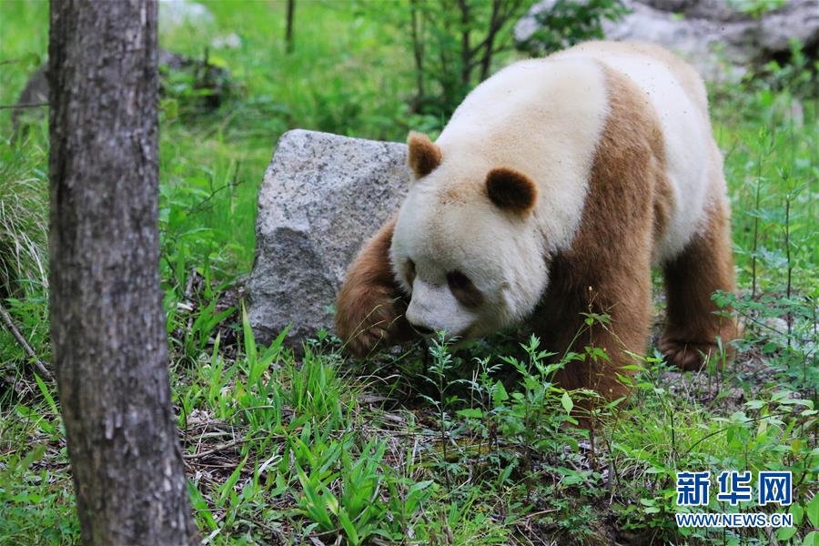 野化培訓(xùn)已逐漸改變大熊貓原來在園中飼養(yǎng)的生活狀態(tài),據(jù)介紹,目前有資料記載的已經(jīng)發(fā)現(xiàn)的棕色大熊貓有8只。 新華社發(fā) 梁啟慧 攝 圖片來源:新華網(wǎng)