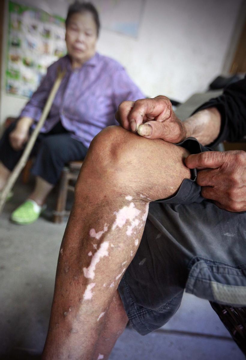當(dāng)了多年的漁民模特,整天也水打交道。黃全德說,他的腳已脫了三層皮。