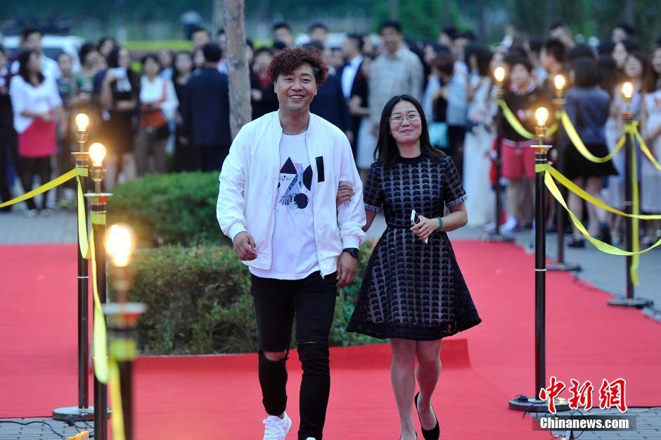 6月3日晚,山西大學(xué)美術(shù)學(xué)院畢業(yè)典禮,大學(xué)畢業(yè)生通過(guò)紅地毯走進(jìn)會(huì)場(chǎng),學(xué)弟學(xué)妹們夾道歡迎。當(dāng)畢業(yè)生情侶一起走秀時(shí),引起學(xué)弟學(xué)妹們一陣尖叫。韋亮 攝