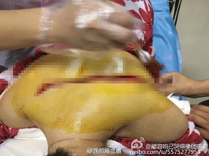7月4日下午,有成都網(wǎng)友發(fā)微博稱,1日晚上9點過,她同朋友經(jīng)過成都龍泉驛區(qū)航天北路美食街時,被一名騎自行車的陌生男子劃傷背部,傷口長度達(dá)32厘米,深度3公分左右。隨后,被人送往附近醫(yī)院治療。
