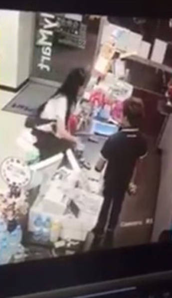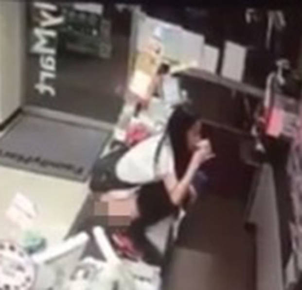 2016年8月3日報道,臺灣,一名女顧客與男店員發(fā)生爭執(zhí),竟爬上便利店柜臺脫掉褲子小便。