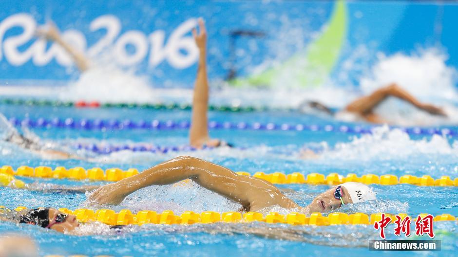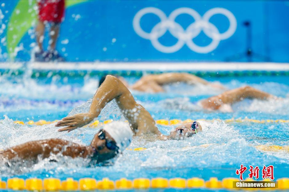 當?shù)貢r間8月4日,里約奧林匹克水上項目體育館,中國游泳選手孫楊在泳池內(nèi)進行賽前訓練。中新網(wǎng)記者 盛佳鵬 攝