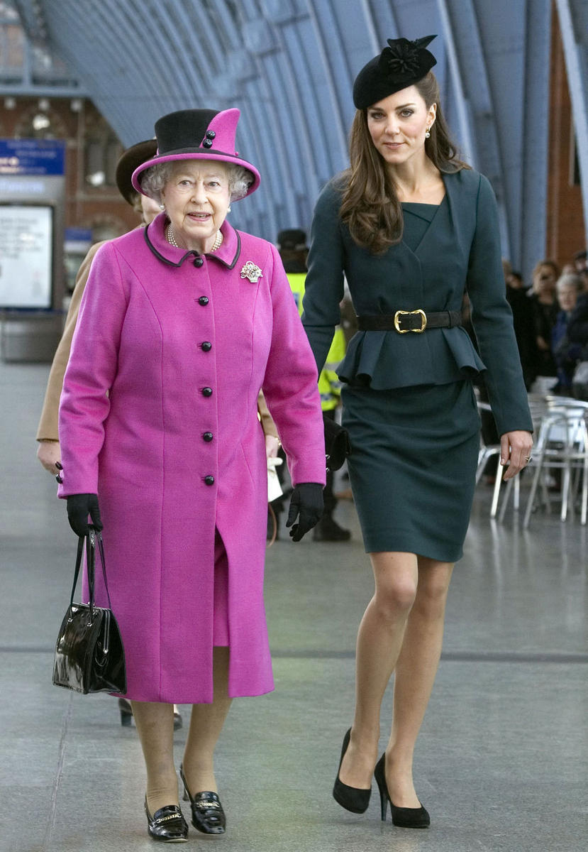 伊麗莎白二世與凱特王妃昔日出行照片。