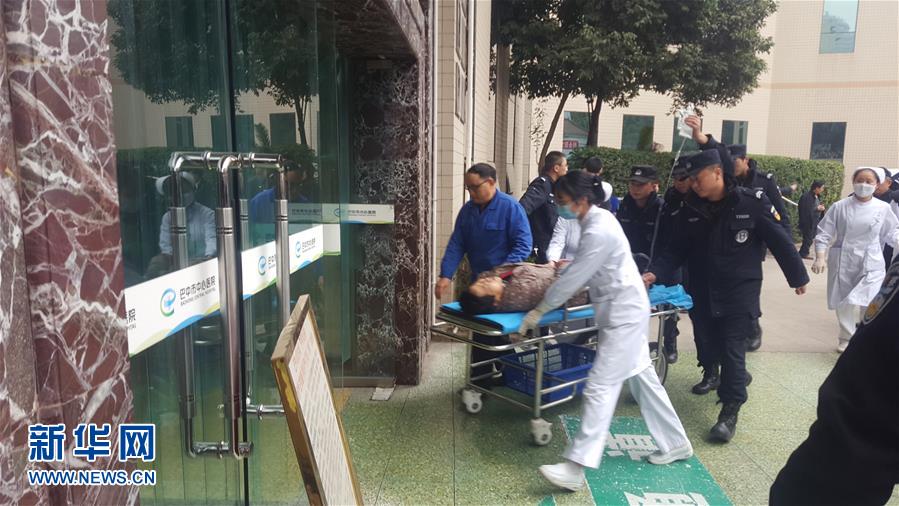 12月18日,醫(yī)護(hù)人員將一名疑似中毒人員轉(zhuǎn)運(yùn)至四川省巴中市中心醫(yī)院(手機(jī)拍攝)。記者18日從四川省巴中市委宣傳部獲悉,當(dāng)日巴州區(qū)金碑鄉(xiāng)發(fā)生一起涉及30名群眾的疑似食物中毒事件。目前,已造成2人死亡,3人病情較重。新華社發(fā)(新浪微博網(wǎng)友@巴中那些事 提供)