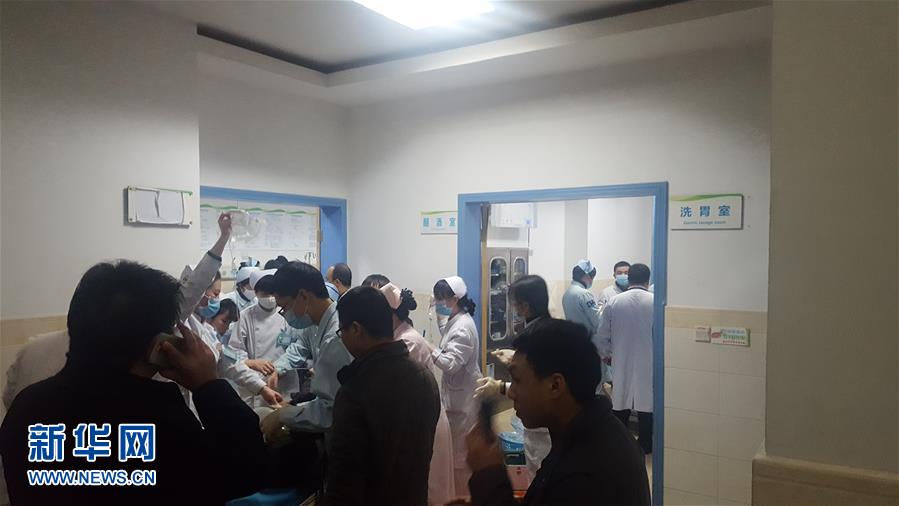 12月18日,在四川省巴中市中心醫(yī)院,醫(yī)護(hù)人員對(duì)疑似食物中毒人員進(jìn)行救治(手機(jī)拍攝)。記者18日從四川省巴中市委宣傳部獲悉,當(dāng)日巴州區(qū)金碑鄉(xiāng)發(fā)生一起涉及30名群眾的疑似食物中毒事件。目前,已造成2人死亡,3人病情較重。新華社發(fā)(新浪微博網(wǎng)友@巴中那些事 提供)