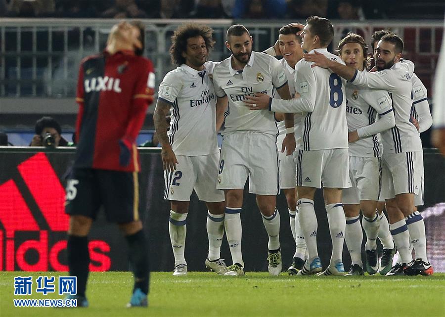 12月18日,皇家馬德里隊(duì)球員在世俱杯頒獎儀式上歡呼慶祝。新華社記者馬平攝