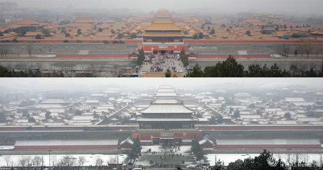 2017年2月21日,北京飄雪,故宮博物院發(fā)布了一組雪景圖。供圖:@故宮博物院