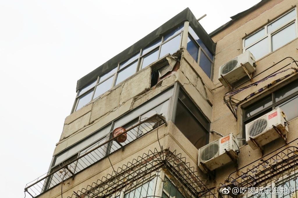 2017年3月12日,鄭州遭遇5級(jí)以上大風(fēng)襲擊,只聽“咚”“咚”幾聲,紅專路附近一棟居民樓的陽臺(tái)因年久失修,發(fā)生大面積的倒塌。