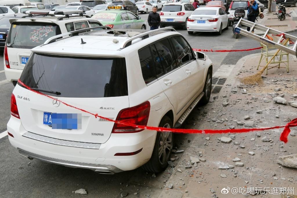事發(fā)現(xiàn)場(chǎng)掉落大量水泥塊,附近群眾用紅繩將現(xiàn)場(chǎng)圍住,以免行人靠近。