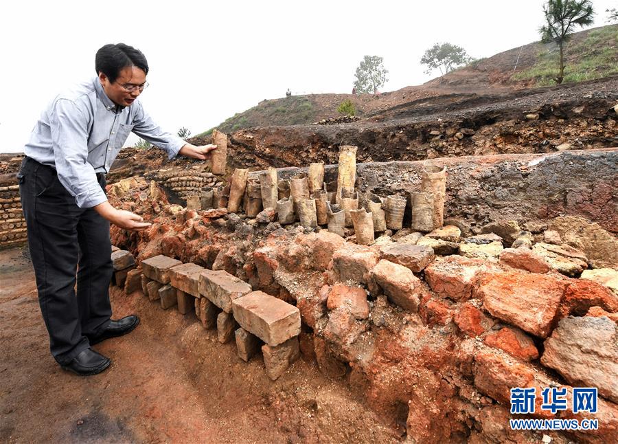 在湖南桂陽(yáng)桐木嶺礦冶遺址,考古工作者展示用于提煉礦物的坩堝(2016年11月18日攝)。