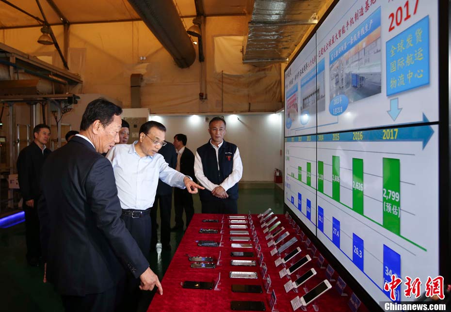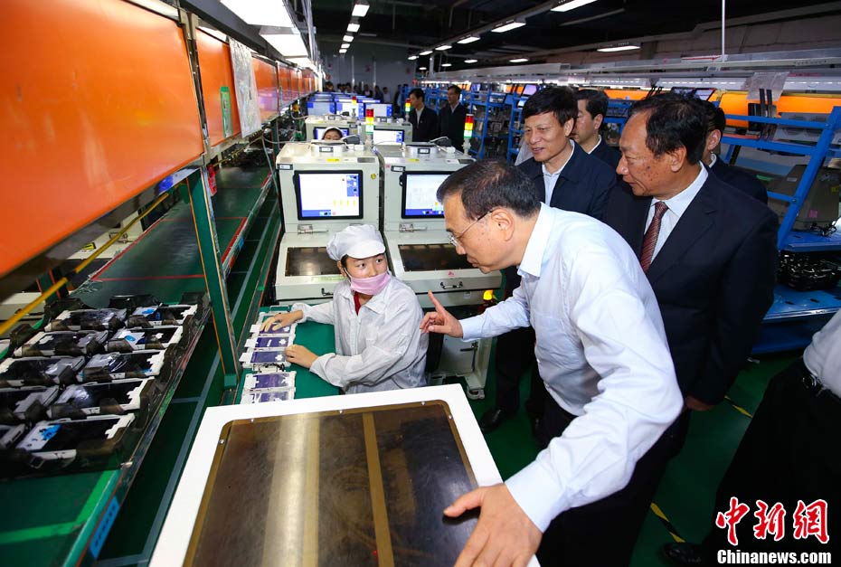 5月8日至9日,中共中央政治局常委、國(guó)務(wù)院總理李克強(qiáng)在河南省委書(shū)記謝伏瞻、省長(zhǎng)陳潤(rùn)兒陪同下,在開(kāi)封、新鄉(xiāng)、鄭州考察。圖為5月9日,李克強(qiáng)考察鄭州富士康科技園。中新社記者 劉震 攝