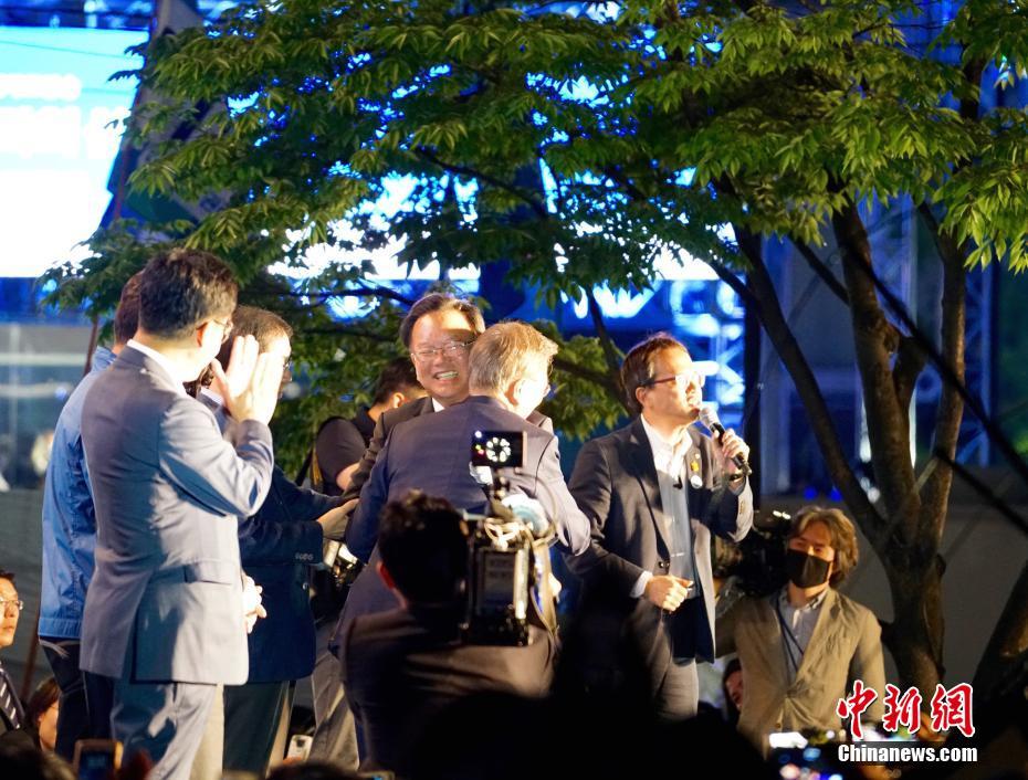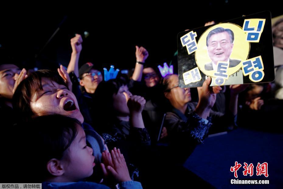 當?shù)貢r間5月9日深夜,韓國第19屆總統(tǒng)選舉共同民主黨候選人文在寅及其競選團隊現(xiàn)身首爾光化門廣場,發(fā)表“勝選演說”,與支持民眾握手慶祝。據(jù)出口民調(diào)顯示,文在寅在當日進行的大選投票中以41.4%的支持率絕對優(yōu)勢勝選。在選舉管理委員會公布的大部分開票結果中,文在寅得票率也遙遙領先,提前鎖定勝局。