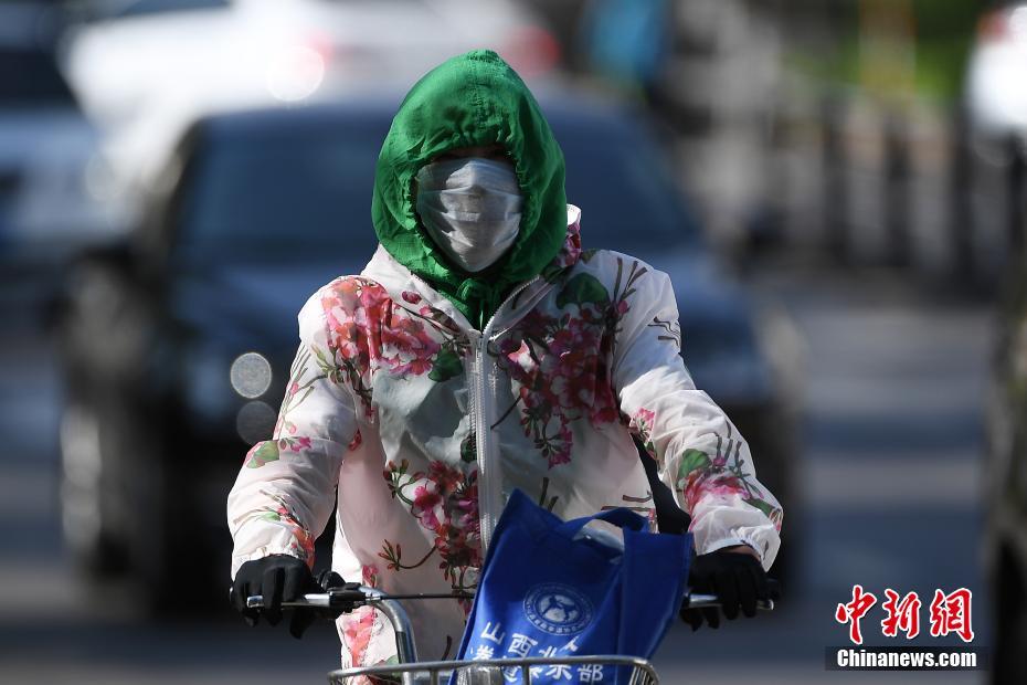 5月17日,山西太原,民眾在烈日下“全副武裝”出行。據(jù)中央氣象臺(tái)消息,17日-19日,北方多地將遭遇今年以來(lái)首次大范圍高溫天氣,涉及京津冀、內(nèi)蒙古等7省市區(qū),其中18日高溫范圍最廣、強(qiáng)度最大,內(nèi)蒙古東部偏南地區(qū)局地更有可能出現(xiàn)38-40℃的最高氣溫。武俊杰 攝