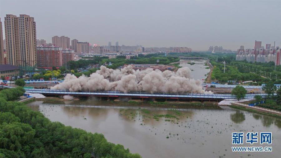 5月31日,長(zhǎng)春自由大橋在進(jìn)行橋面爆破。新華社記者 張楠 攝