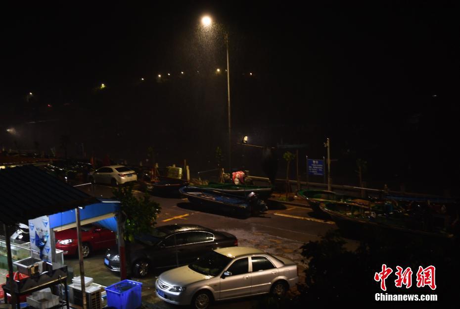 6月13日凌晨,臺風登陸后的深圳南澳斜下漁村,風雨交加。陳文 攝
