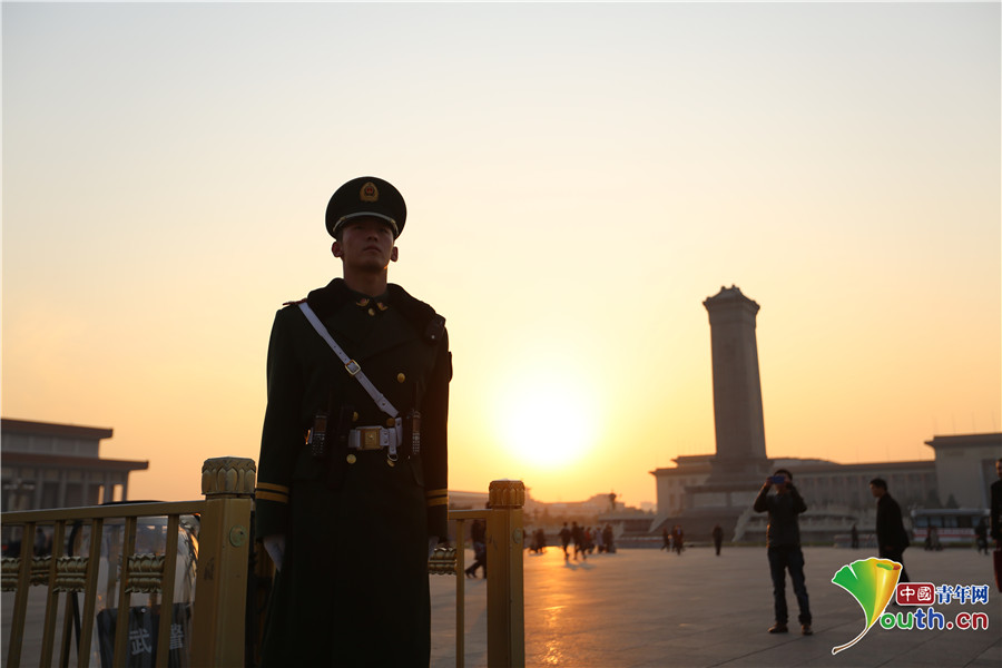 寒風(fēng)刺骨,吹不垮他們堅毅的身軀;荊棘坎坷打不敗他們愛國的熱情。守護(hù)天安門是他們的責(zé)任,保衛(wèi)國家是他們的擔(dān)當(dāng)……
