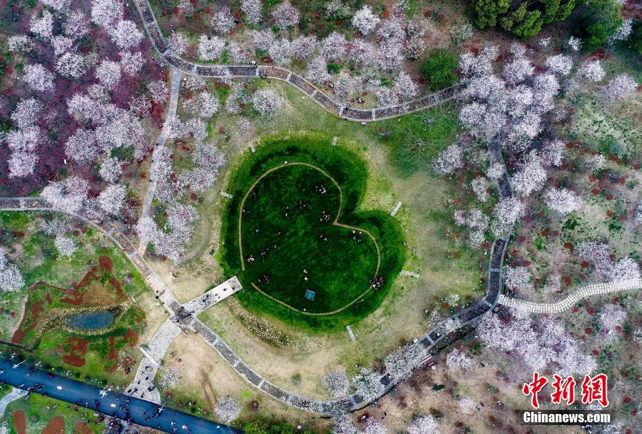 3月17日,游客在江西南昌鳳凰溝景區(qū)游玩。連日來(lái),江西南昌鳳凰溝萬(wàn)株櫻花盛放,形成延綿萬(wàn)米的櫻花隧道,場(chǎng)面極為壯觀,前來(lái)賞花的游人絡(luò)繹不絕。圖為“心形”草坪與櫻花交相輝映,畫面十分唯美。
