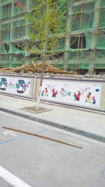 4月8日上午,許昌市區(qū)府前街南側。距離人行道約7米遠的南面,是一棟在建的6層高樓房。從外觀上看,該樓房剛剛封頂,而樓體外的防護網(wǎng)卻已經(jīng)支離破碎。目前,該工地已被勒令停工。