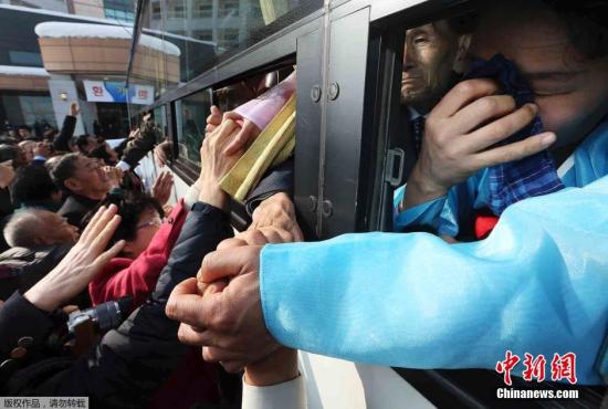 資料圖:圖為當?shù)貢r間2014年2月25日,韓朝離散家屬第二輪會面活動結(jié)束,親屬間揮淚話別。