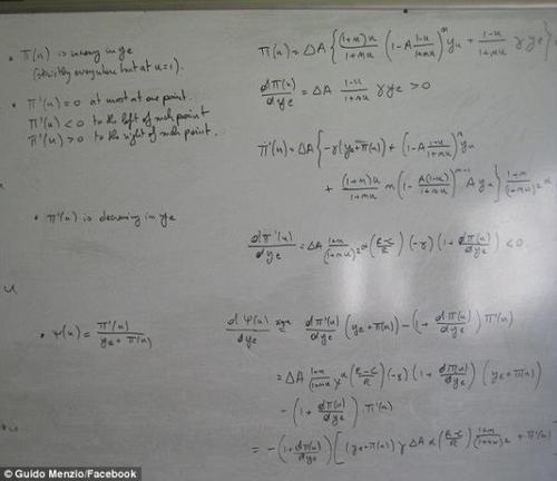 門齊奧因此被趕下機,由有關(guān)當(dāng)局對他進(jìn)行調(diào)查,指他寫的神秘符號令他人起疑心。門齊奧不禁失笑,并向官員展示這其實是數(shù)學(xué)公式,準(zhǔn)備在加拿大安大略省的皇后大學(xué)演講時使用。