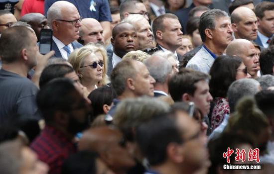資料圖:當(dāng)?shù)貢r間9月11日,“911”15周年紀(jì)念活動在美國紐約911紀(jì)念公園舉行,圖為美國民主黨總統(tǒng)候選人希拉里出席當(dāng)天的紀(jì)念活動。 中新社記者 廖攀 攝
